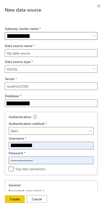 Once you have the installation completed go to Power BI service and go to Settings-> Manage gateways on the top right corner and create new data source.
